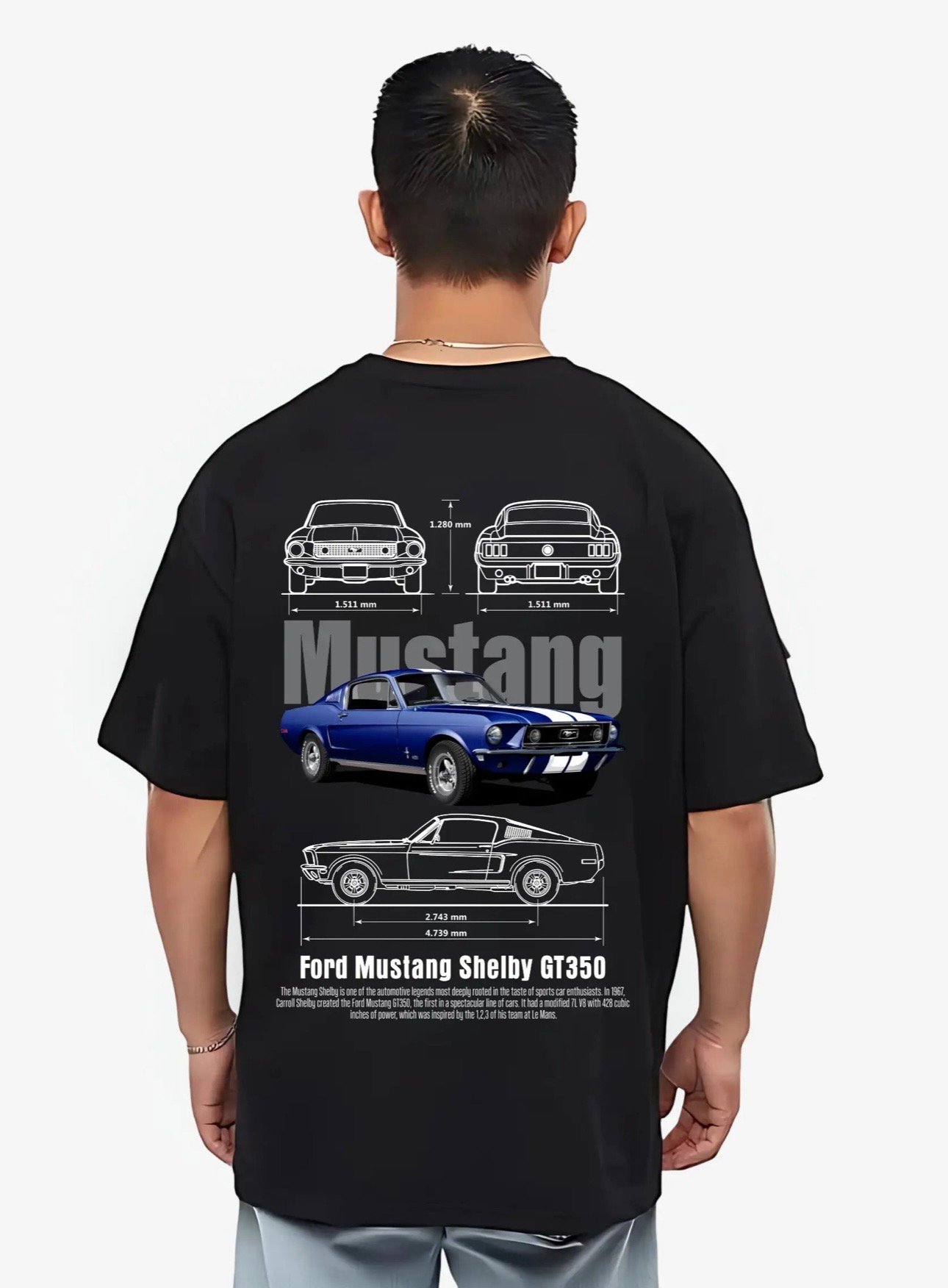 The Vibe Celebrate the high-revving masterpiece of American engineering with the Ford Mustang Shelby GT350 Oversized Tee. This design honors the track-focused legend that brought the “Voodoo” flat-plane crank V8 to the streets—a car that sings a 8,250 RPM symphony. Set against a deep midnight black canvas, the technical back graphic captures the GT350’s functional aggression, from its vented hood to its distinctive Cobra-badged grille. It is a definitive staple for the driver who values mechanical purity, cornering precision, and the legacy of Carroll Shelby.