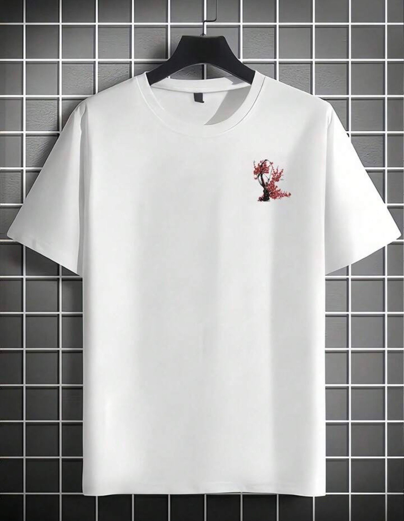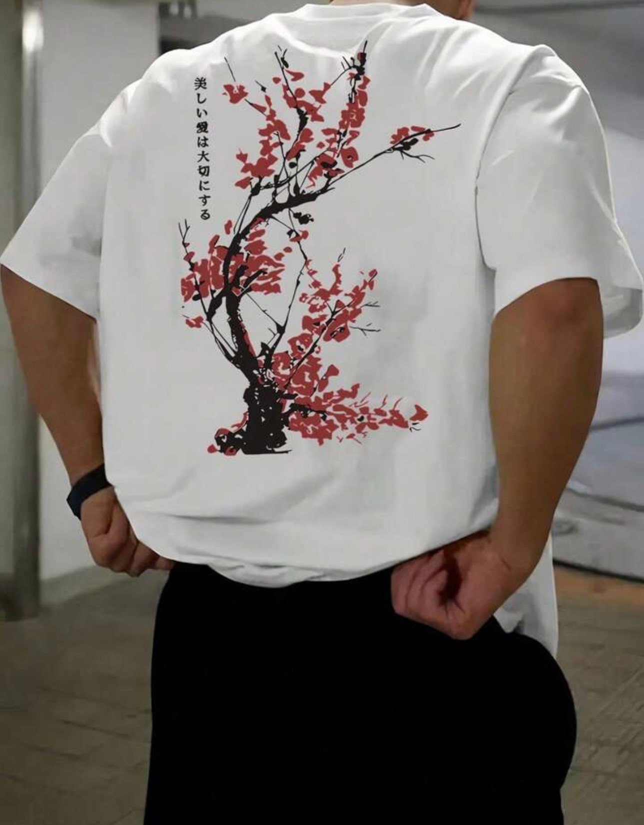 “Cyber-Botanical” Illustration: Features a massive back-print of traditional Sakura blossoms intertwined with glowing neon vines and “glitched” geometric shapes.